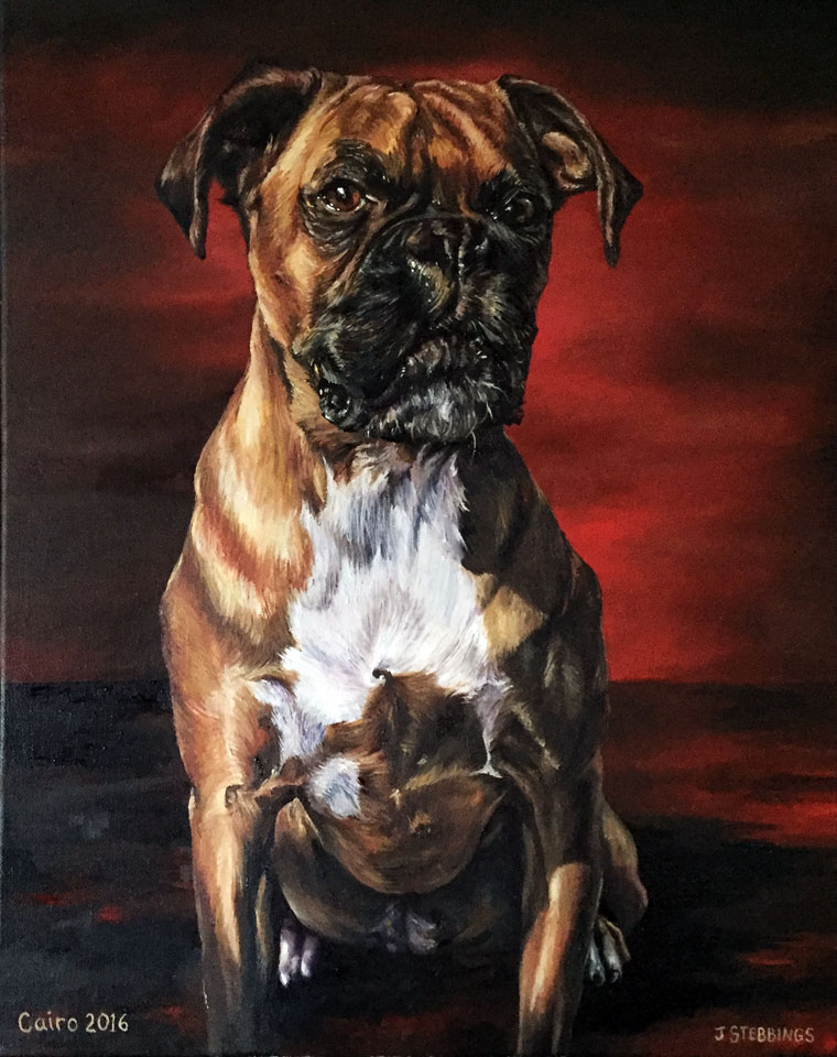 16" x 18" Oil on wrap Canvas, Cairo the beautiful Boxer. Not for sale but pet commissions welcome.